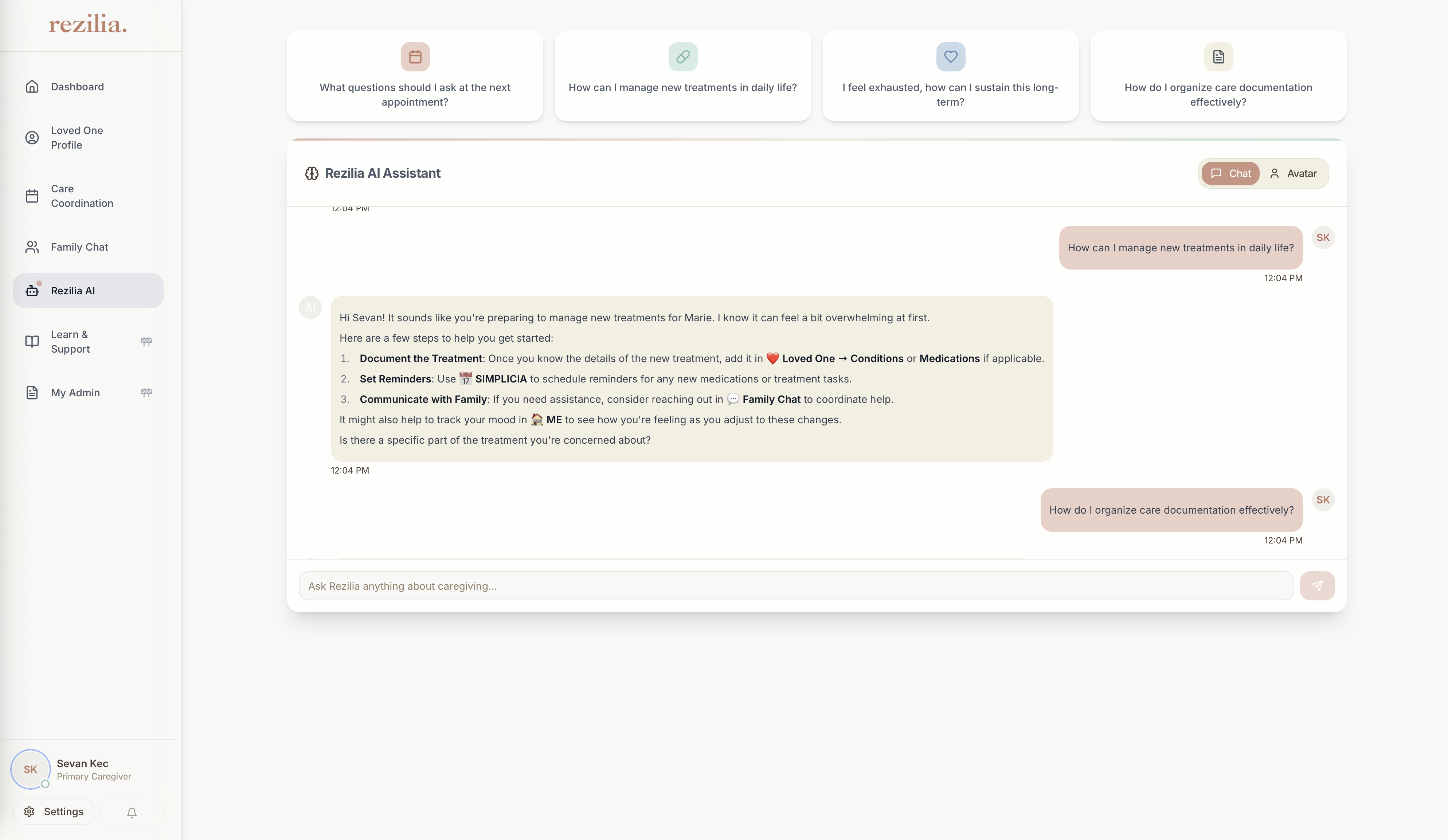 Join our exclusive Beta Program and be among the first to experience Rezilia's AI-powered caregiving support